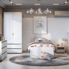 Комод подростковая Антилия (Дуб Крафт белый/Белый глянец)